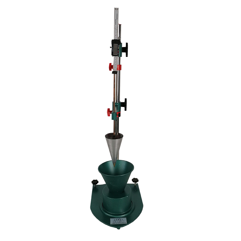 3.松开刻度尺,让标准锥体以其自身重量沉入砂浆混合物中。