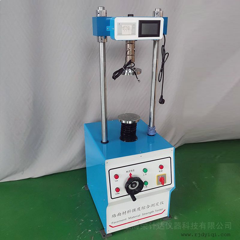 路面材料强度综合测定仪具有加载稳定、噪音小、丝杆行程大、操作简单等优点,是公路施工单位、大专院校及质检部门所需仪器。仪器设有过载保护,本机配备其它相关夹具可进行多项试验,如水泥和石灰稳定土的抗压强度、劈裂强度、回弹模量等试验、沥青混凝土的马歇尔试验、路基土和多种路面材料的承载比(CBR)试验等。可把数据上传电脑 (设备出厂默认4种试验:CBR承载比试验、马歇尔稳定度试验、无测限抗压强度试验、其他试验、标配双压力传感器50KN/200KN、双位移传感器) 产品参数