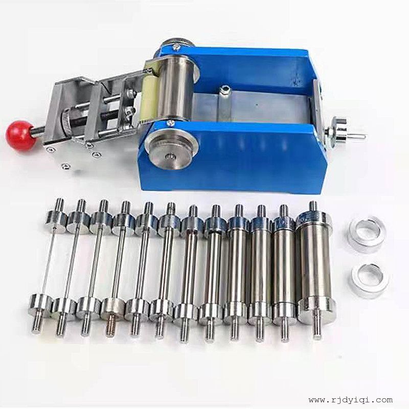 3、按产品要求选择一个合适的轴棒。插入试验器基座与轴棒孔中,并用手动螺母紧固。