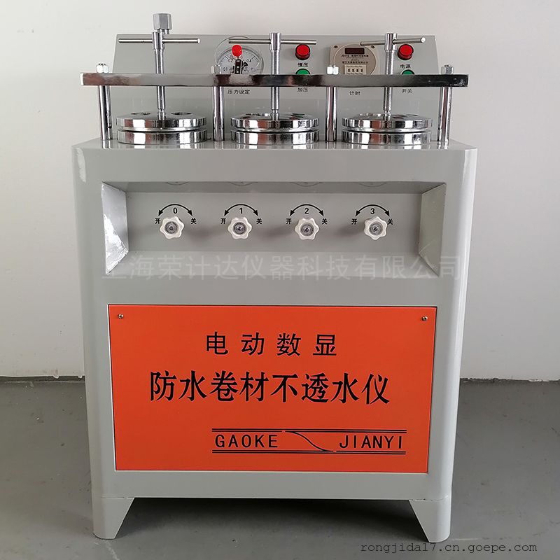 防水卷材不透水仪是检测仪器,用于检测石油沥青油毡及高分子防水卷材不透水性的仪器,使用前务必仔细阅读说明书。并由实验人员操作,以避免操作不当引起的伤害。如需了解更多资料请与我公司客服人员联系。防水卷材不透水仪由上海荣计达仪器科技有限公司提供,依照GB/T328.8-2007所规定的试验要求设计制造。设备质保期一年,一年内产品如有质量问题,供方负责免费维修。如果因操作不当或者人为损坏,我公司亦应提供维修、更换服务,由此产生的费用我公司会酌情收取。